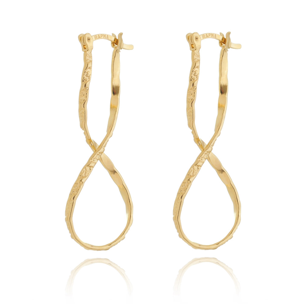 Brinco argola torcida em formato de infinito banhado a ouro 18k. Com design elegante e textura delicada, esta peça simboliza sofisticação e eternidade, perfeita para quem busca um acessório exclusivo e marcante.