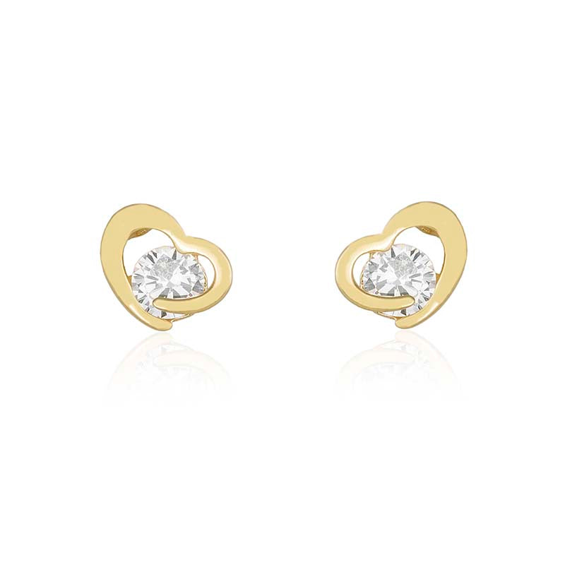 Brinco delicado em formato de coração vazado, confeccionado em metal com banho de ouro 18k e acabamento impecável. No centro, um cristal lapidado adiciona brilho e elegância à peça. Um modelo romântico e sofisticado, perfeito para qualquer ocasião.