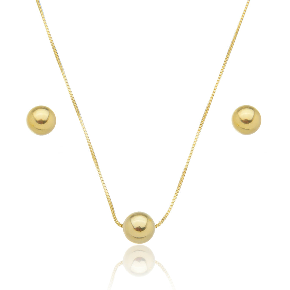 Conjunto Colar e Brinco Esfera Lisa, banhado a ouro 18k. Um clássico atemporal que combina simplicidade e elegância. Ideal para quem valoriza acessórios discretos, mas sofisticados.