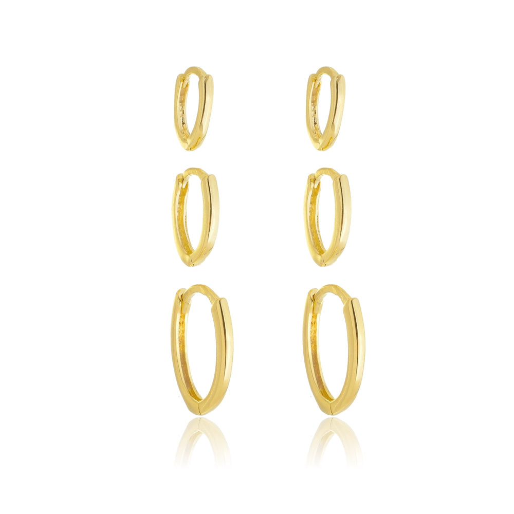 ✔ Kit com 3 pares de argolas em tamanhos diferentes