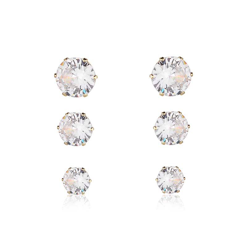 Kit de Brincos ponto de luz em Zirconia, com banho de ouro 18k e acabamento impecável. Um modelo romântico e sofisticado, perfeito para qualquer ocasião.Indicado para uso nos 3 furos ou ate mesmo individualmente.